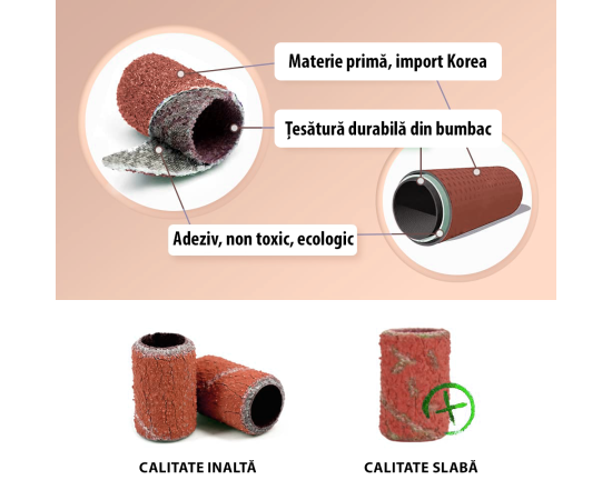 Rezerve brusnog papira za električnu turpiju prikladne su za turpijanje, poliranje i završnu obradu manikure. Tako se abrazivni prstenovi mogu koristiti za manikuru s akrilom, UV gelom, trajnim lakom za nokte, na vrhovima ili prirodnim noktima. Ove brusne glave imaju različite granulacije #120, što će vam pomoći da postignete potpunu manikuru/pedikuru. Blago abrazivni krajevi koriste se za završnu obradu manikure, a oni jako abrazivni za skidanje gela, akrila ili poligela.