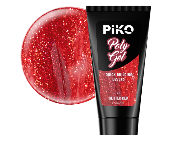 PIKO polygel za nokte 30 g 31 Glitter Red