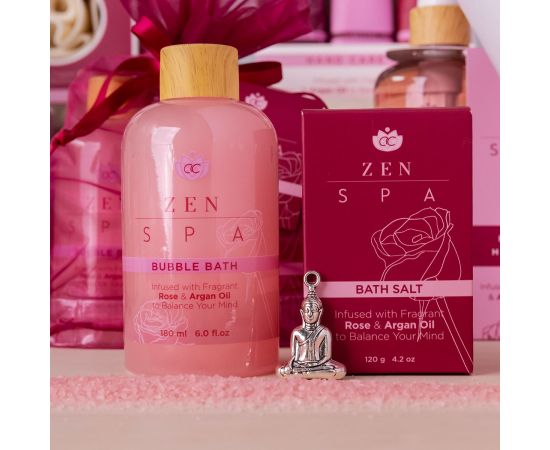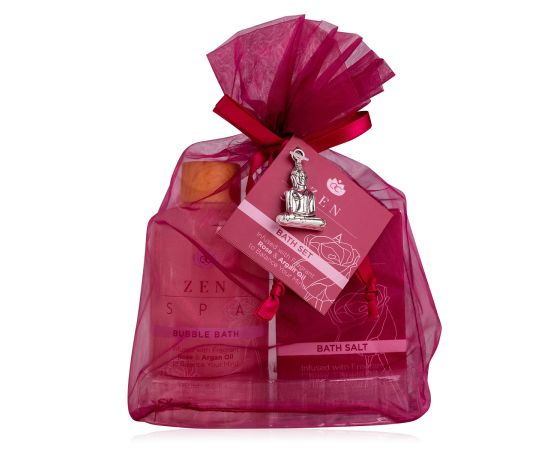 Pokloni za žene, Pjena za kupanje, sol za kupku, Wellness set ZEN SPA in organza bag with Buddha pendant, 180ml bubble bath, 120g bath salt, infused with Rose and Argan Oil, fragrance: Rose & Argan, col. red, pokloni za božić