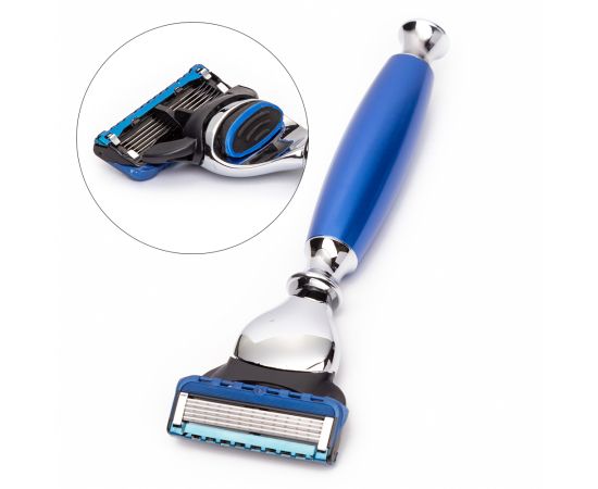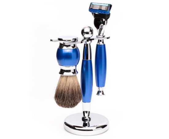 Brijački set "Royal Blue Modern" Yoshimoto vrhunske kvalitete. Namijenjena je snažnom muškarcu, ali pozornom na izgled, koji cijeni stil.