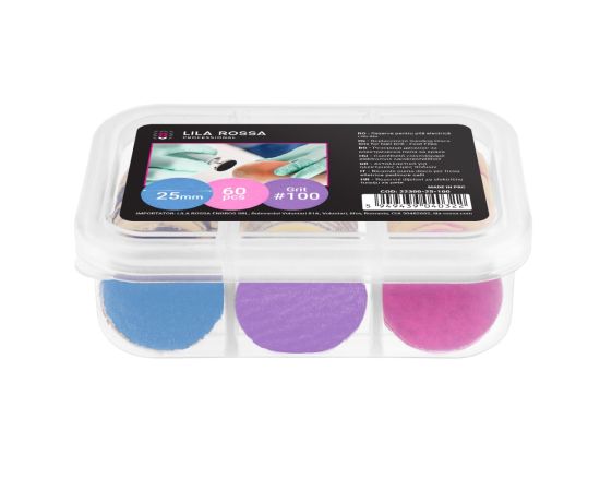 "Na web stranici online trgovine Lila Care, koja je na tržištu prisutna od 2009. godine, možete pronaći Set 60 rezervnih diskova #100 za električnu turpiju za pete s diskom 25 mm po cijeni od 3.49 EUR. Bilo da ste iz Zagreba ili nekog drugog dijela zemlje, nemojte se ustručavati naručiti Lila Rossa proizvode za manikuru od Lila Care!