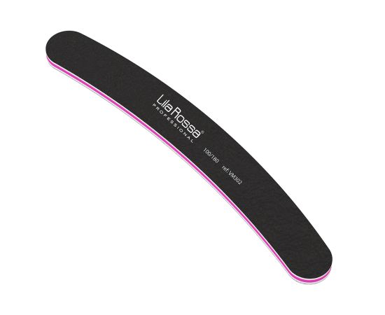 Turpija za nokte Lila Rossa banana crno Turpija s 2 lica različite veličine zrna. Izrađen od otpornog i izdržljivog materijala. Idealan je za skraćivanje i modeliranje umjetnih, ali i prirodnih noktiju.