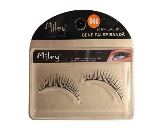 Trakaste umjetne trepavice, Miley 06 imaju intenzivnu crnu boju i idealne su za nošenje kada želite glamurozni i sofisticirani make-up. Ugodne su za nošenje. Izrađena od sintetičke dlake. Ljepilo je uključeno